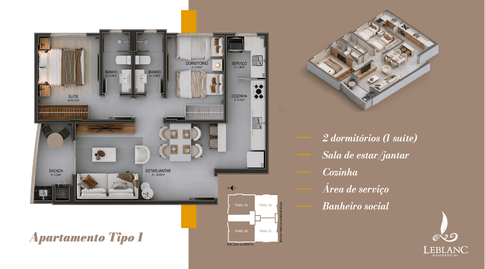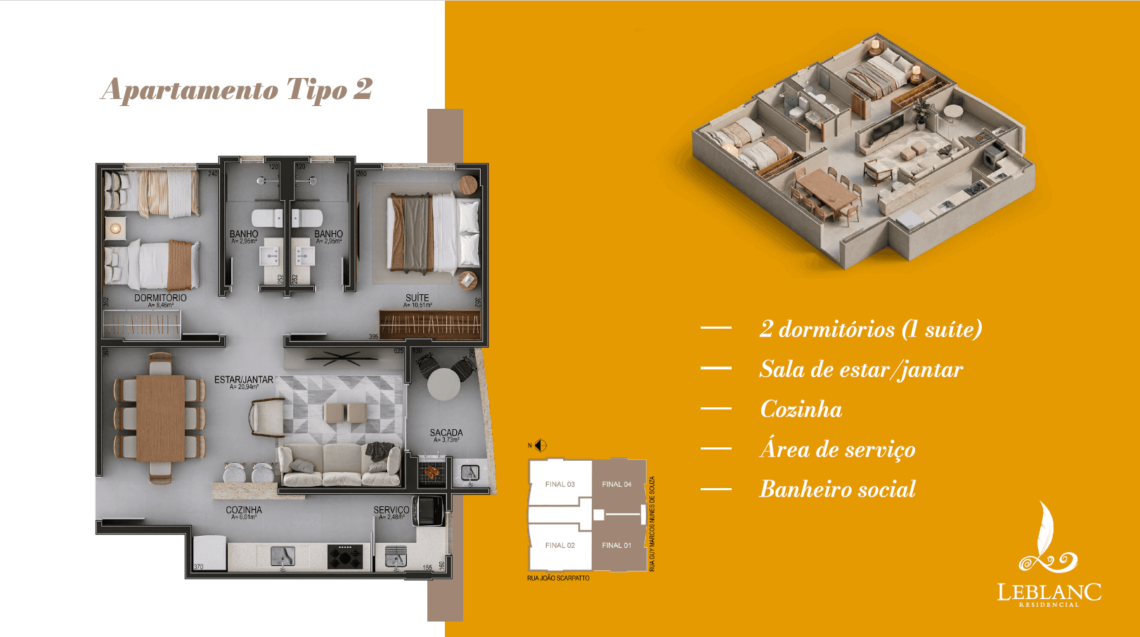 Seu novo capítulo começa agora no centro de Cocal do Sul! 🗝️✨ O LeBlanc Residencial acaba de ficar pronto e foi projetado para quem não abre mão de modernidade e praticidade. Já pensou em morar no coração da cidade e fazer tudo o que precisa a pé? 🚶♂️🏢 Aqui, a conveniência de estar próximo a mercados e ao comércio local se une ao conforto de um imóvel de excelente padrão. O que espera por você: ✅ Apartamentos com 2 dormitórios (sendo 1 suíte); ✅ Sacada com churrasqueira para seus momentos de lazer; ✅ Hall de entrada elegantemente mobiliado e decorado; ✅ Salão de festas pronto para suas celebrações; A melhor parte? Facilitamos sua conquista! 💰 Entrada + parcelamento direto no boleto. Sem burocracia. Valores a partir de R$ 410 mil. Desconto para pagamento à vista. Não espere mais para morar no que é seu. As chaves do seu novo estilo de vida estão aqui! 👉 Quer conhecer de perto? Me chame no direct e agende sua visita hoje mesmo!